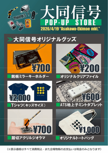 大同信号さんの方々は、踏切遮断機や信号の体験とオリジナルグッズ販売をしてもらいました。前回よりもグッズの種類が増えて充実です。